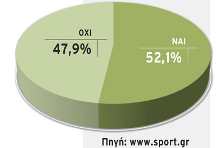 Διίστανται οι απόψεις των φιλάθλων για το αν έκανε καλά η ΑΕΚ που κατέθεσε ένσταση για τον αγώνα με τον Ολυμπιακό Β. λόγω της εισβολής του Μπέου στα αποδυτήρια. Το 52,1% επικροτεί αυτήν την ενέργεια και το 47,9% διαφωνεί.